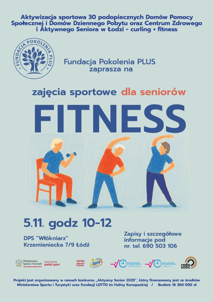 W okresie od 1 września do 30 listopada 2025 r. Fundacja Pokolenia Plus zrealizowała projekt ukierunkowany na aktywizację fizyczną 30 podopiecznych Domów Pomocy Społecznej, Domów Dziennego Pobytu oraz Centrum Zdrowego i Aktywnego Seniora w Łodzi. Program obejmował cykl zajęć sportowo-rekreacyjnych łączących elementy curlingu oraz treningu fitness dostosowanego do możliwości uczestników.